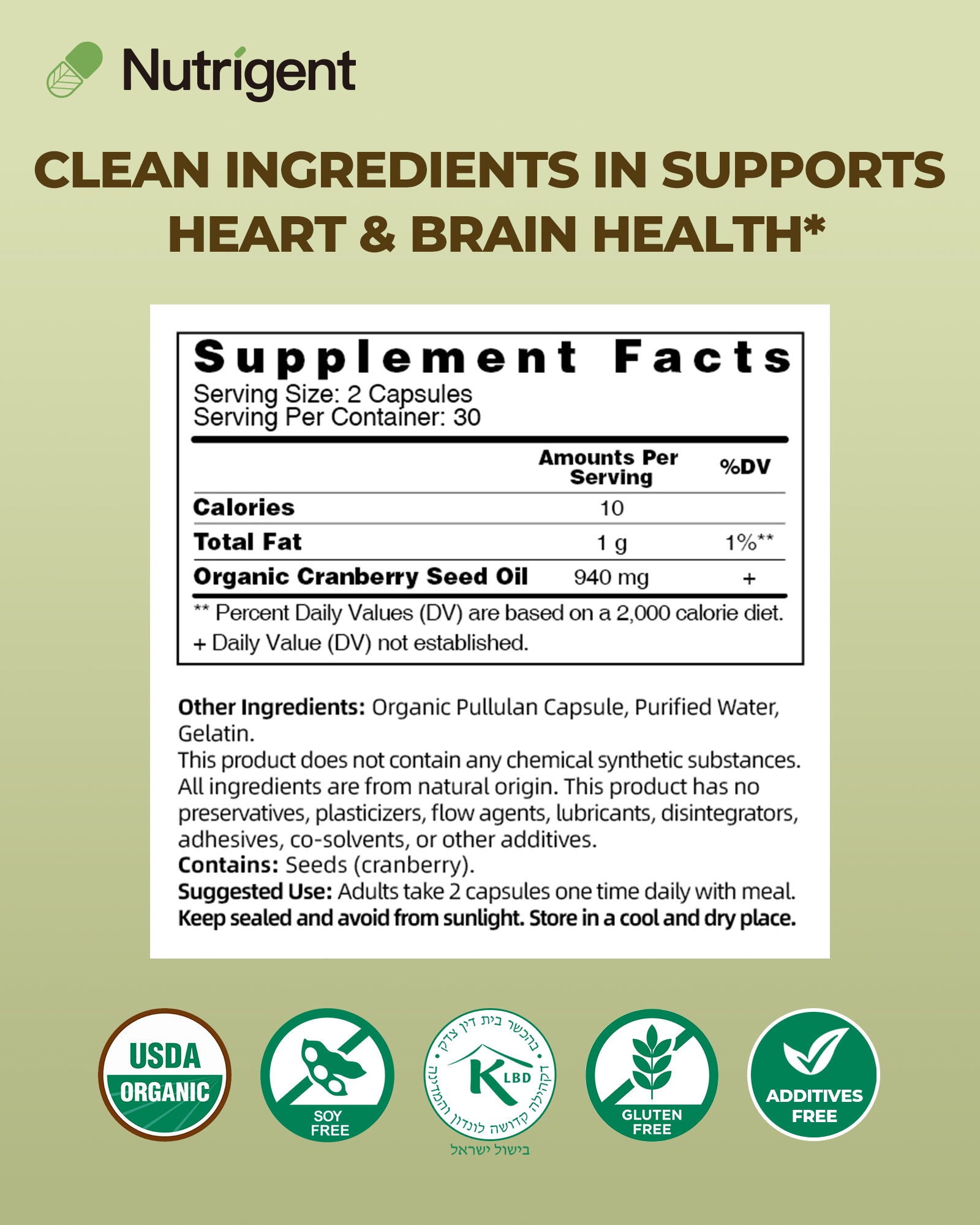 ● USDA Organic: Cold-pressed, 100% organic cranberry seed oil with no carriers, additives, or fillers—pure from seed to capsule.