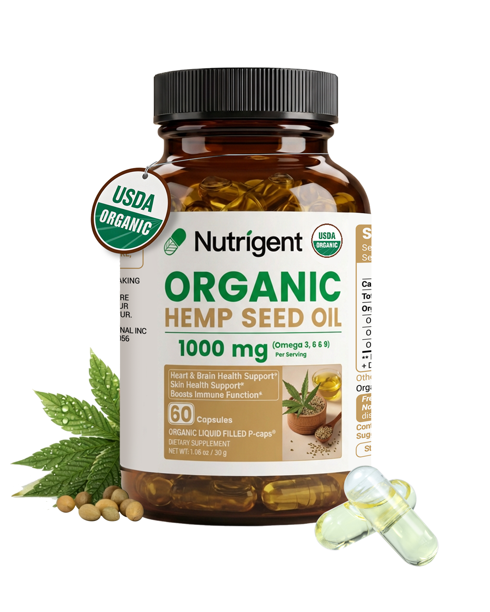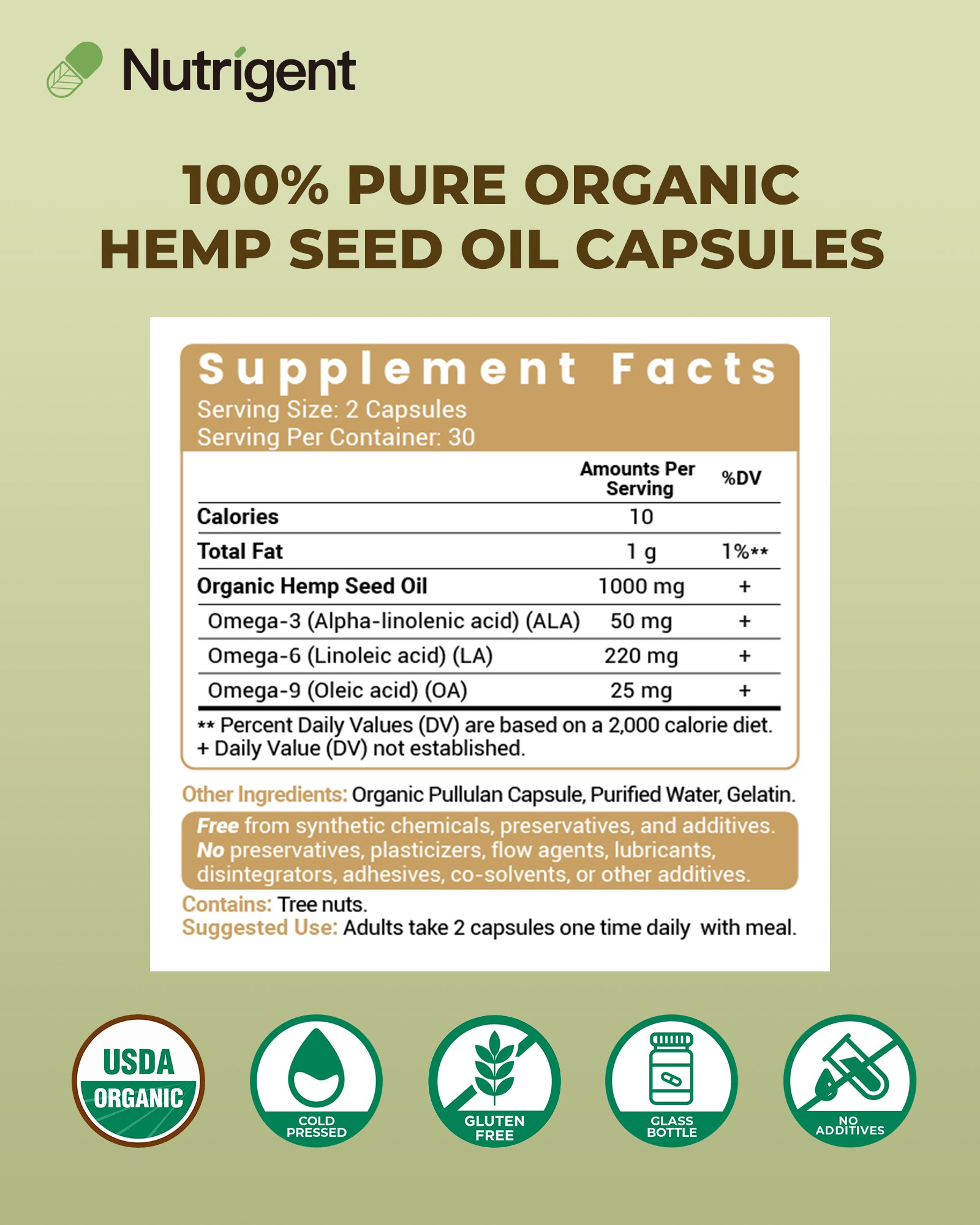 ● USDA Organic: Cold-pressed, 100% organic hemp seed oil with no additives, fillers, or preservatives—pure plant-based nutrition.